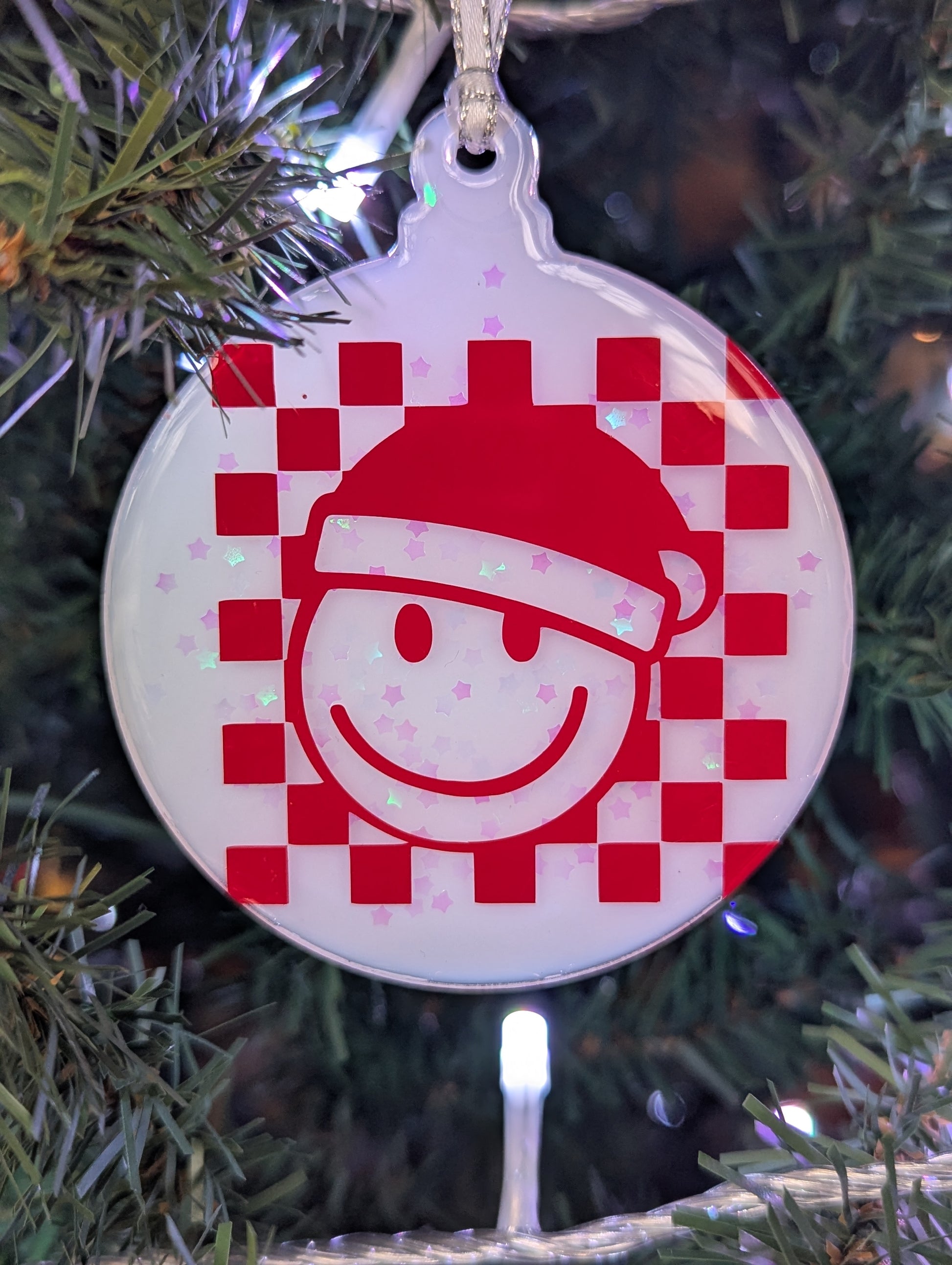 smiley checkered ornament